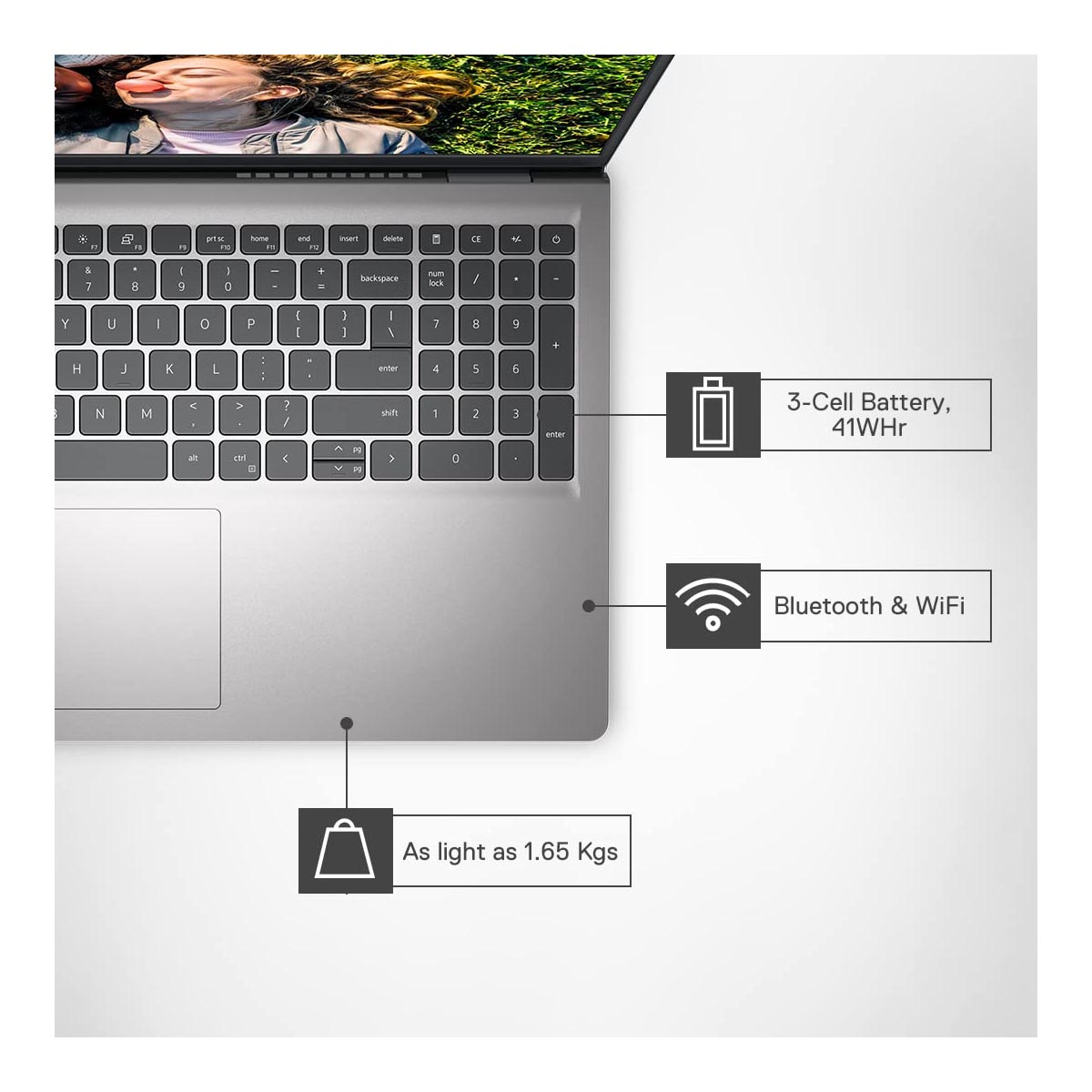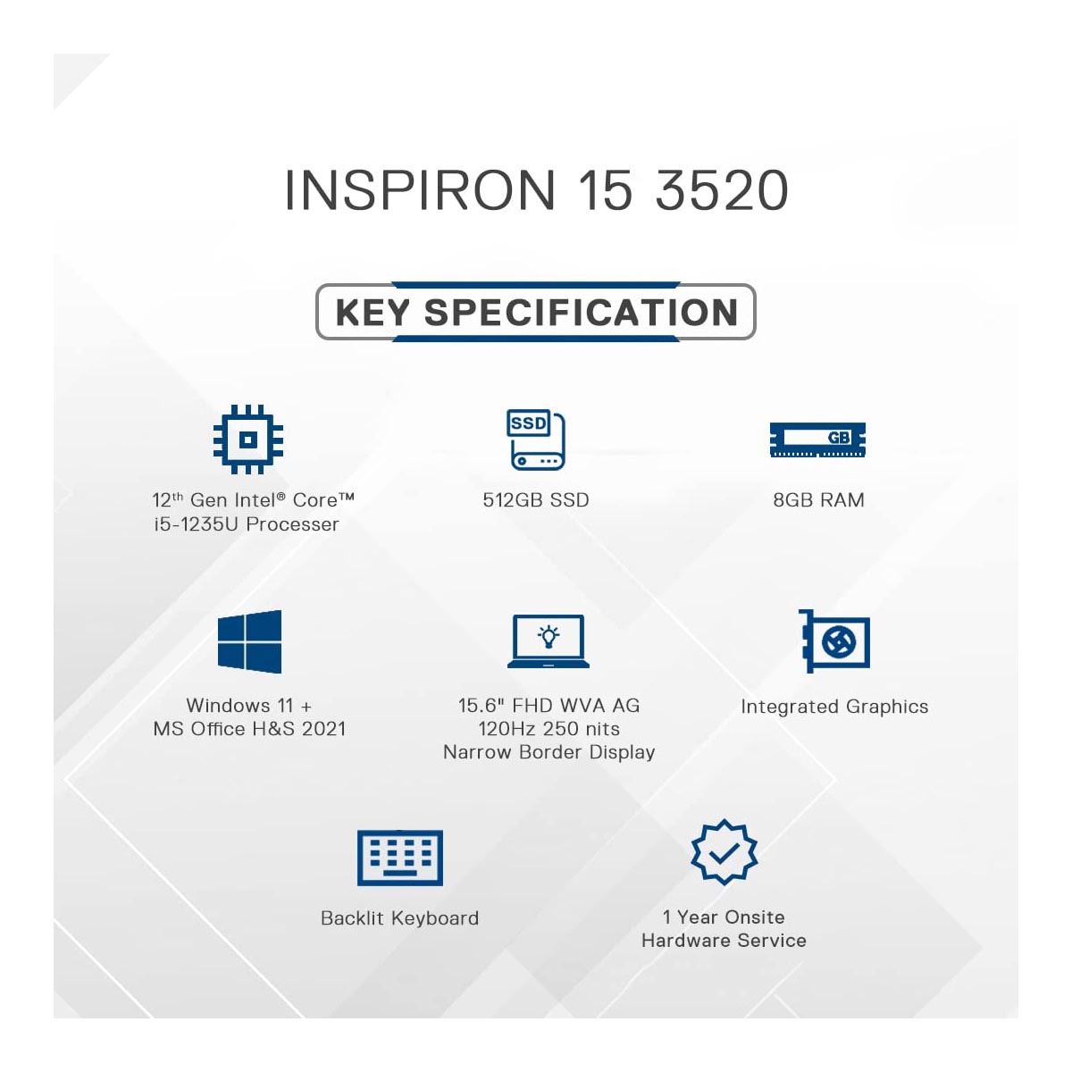Dell Inspiron 3520 Laptop, Intel i5-1235U, 8GB, 512GB SSD, 15.6″ (39.62Cms) FHD WVA AG 120Hz 250 nits, Win 11 + MSO’21, Backlit KB, Silver (D560866WIN9S, 1.65Kgs)