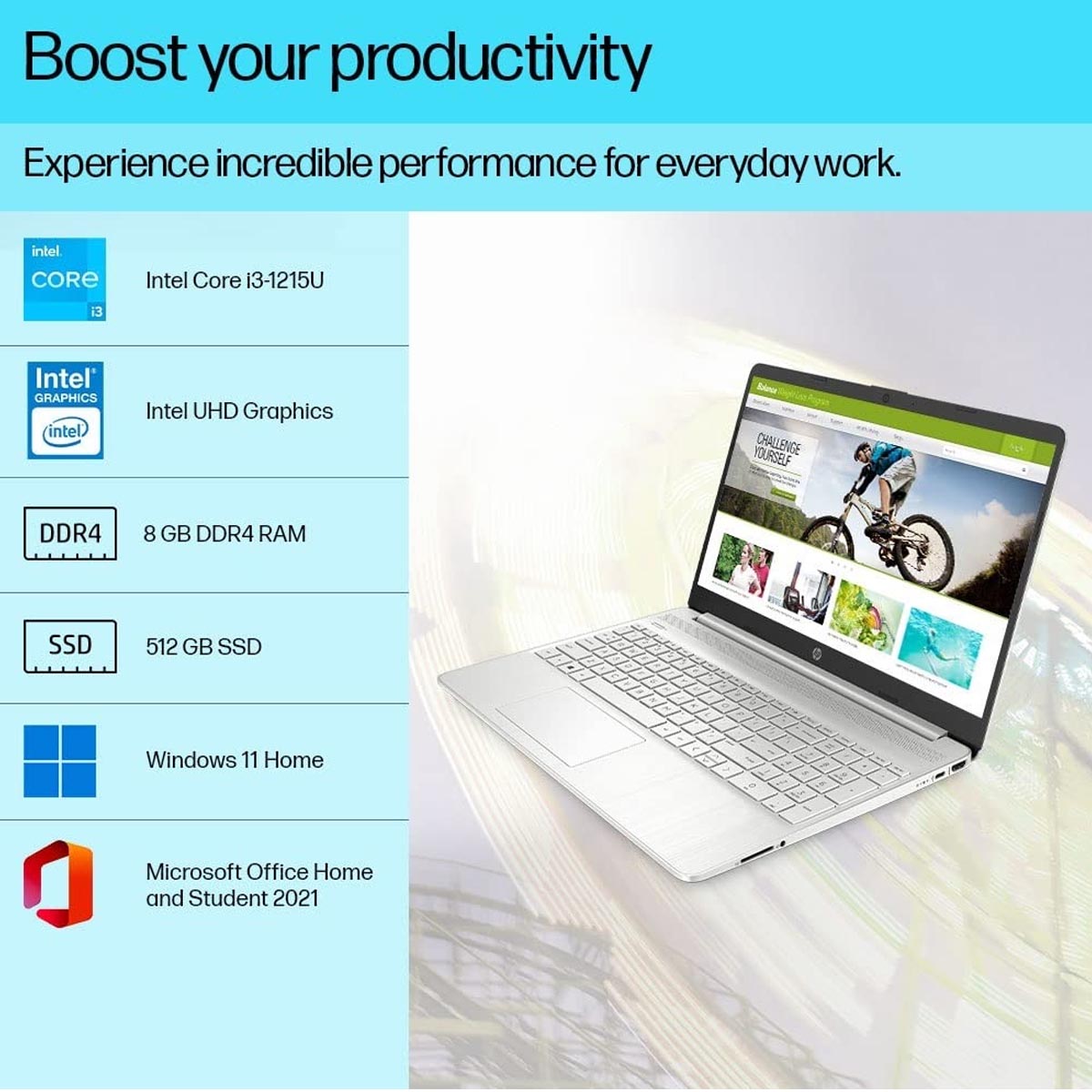 HP 15s-fq5007TU Intel Core i3 12th Gen 1215U – (8 GB/512 GB SSD/Windows 11 Home) Thin and Light Laptop (15.6 Inch, Natural Silver, 1.69 kg, With MS Office)
