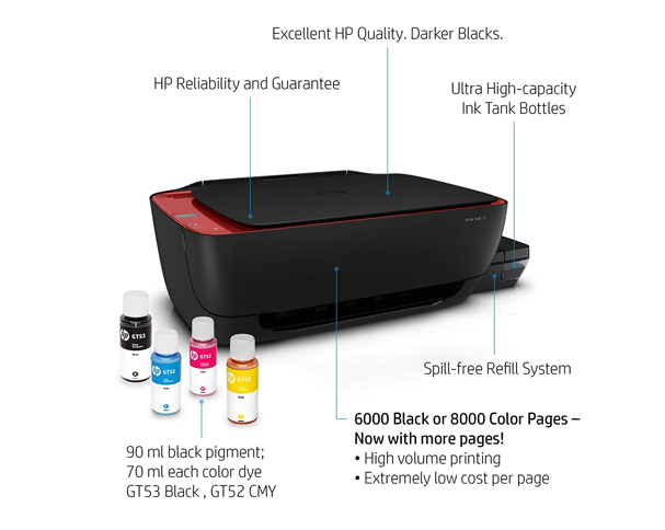CONVENIENT INK MANAGEMENT: Easy to fill ink tanks lets you see how much ink you have left. With newly designed ink bottles specific for each colour itâ€s easier than ever to fill and refill.