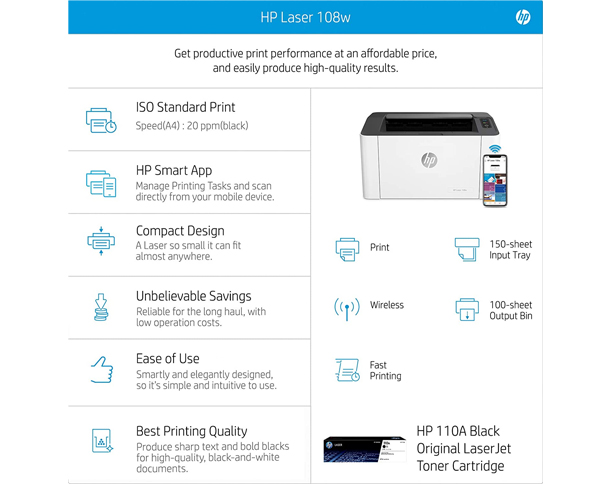 HP Laserjet 108w Compact Design Printer